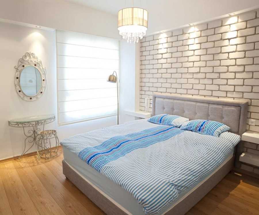 Спальня не принадлежит к влажным помещениям. Для отделки подойдут любые материалы. Правильная комбинация даже с бумажными вариантами позволит создать стильный интерьер.