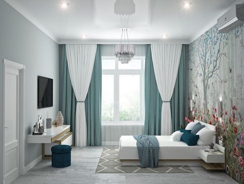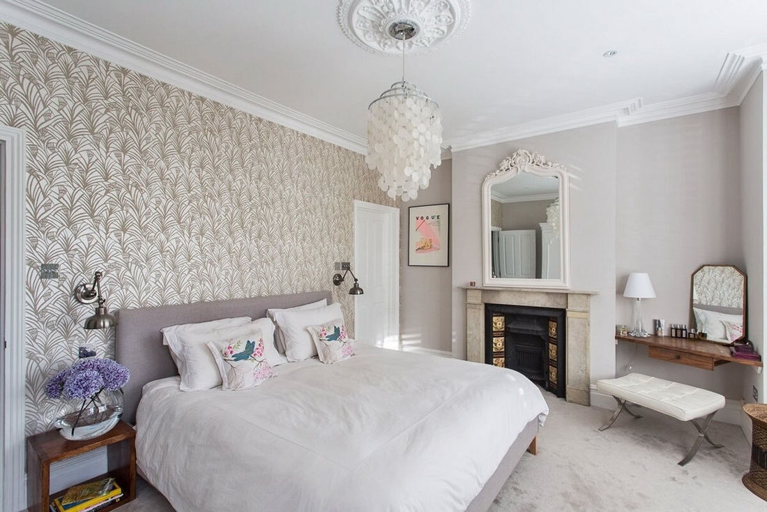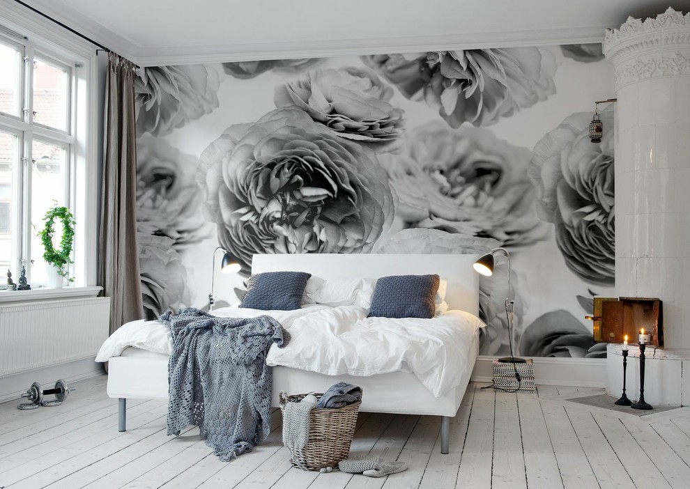 На третьем фото удачный пример красивых нежных цветов на акцентной стене в спальне. Они делают спальню женственной. Цветы притягивает взгляд, их можно сочетать практически с любым пастельным цветом. Такая отделка прекрасно сочетается с мебелью и текстилем, что создает интерес и ценность дизайна.