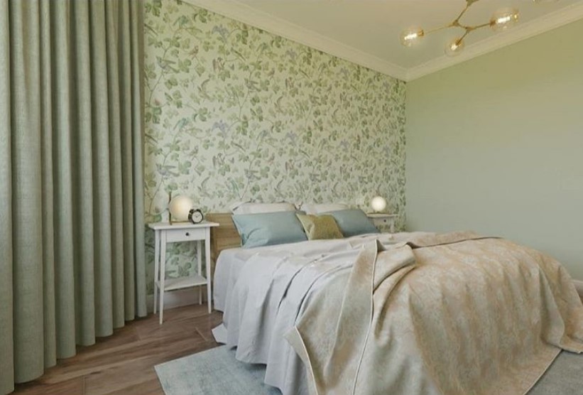 - Выбирайте спальные с тонкими узорами, цветочными мотивами, барокко и геометрическими узорами.