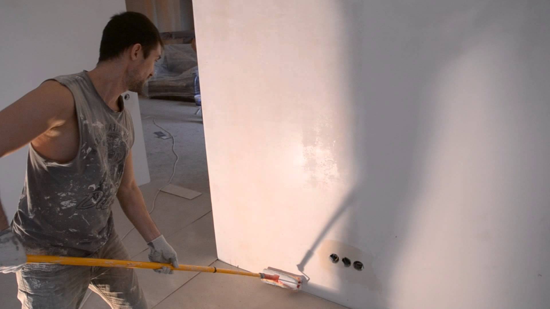 Вертикальное нанесение грунта перед шпаклеванием декоративной штукатуркой