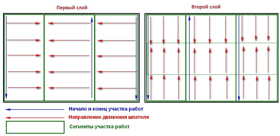 - нанесение первого слоя и выравнивание;