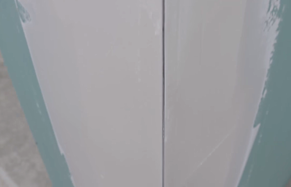 - Наложить на шов финишную шпатлевку. Промоченную ленту приклеить на клей ПВА к стыку. После высыхания провести шпаклевку всей поверхности.
