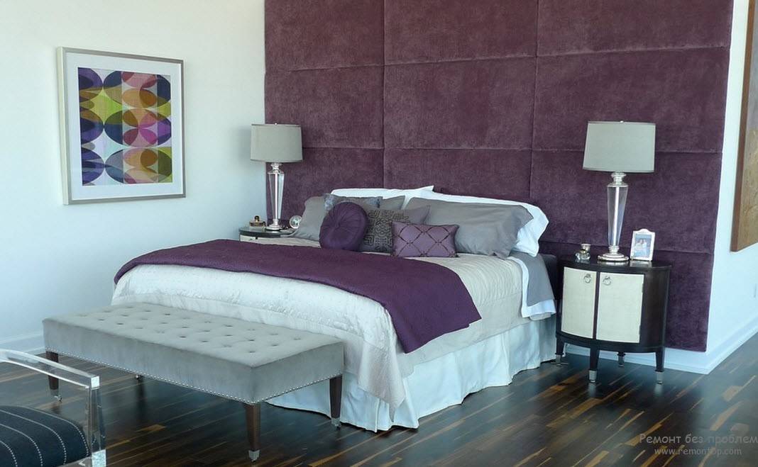 Для мужской спальни фиолетовый цвет подходит в качестве акцента