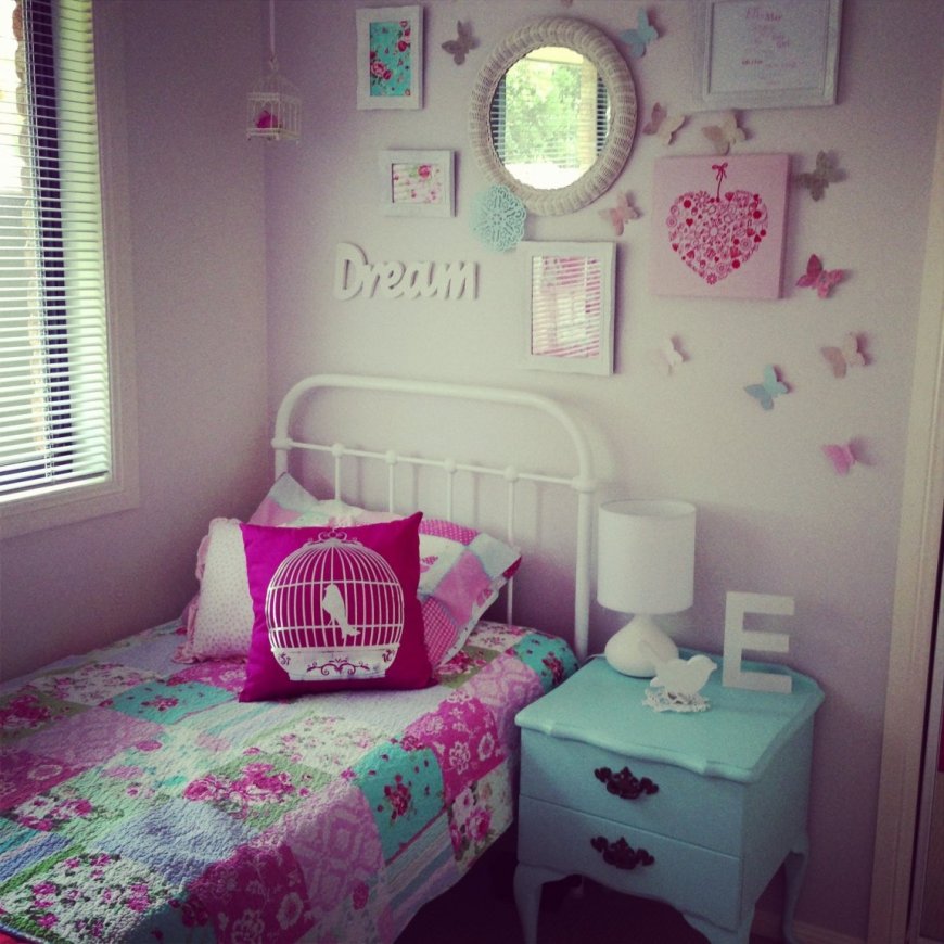 Сделайте стены серыми, потолок — на несколько нюансов светлее, а цветовые акценты — сиреневыми или фиолетовыми. Светлые тона как нельзя лучше будут смотреться в девичьих спальнях.