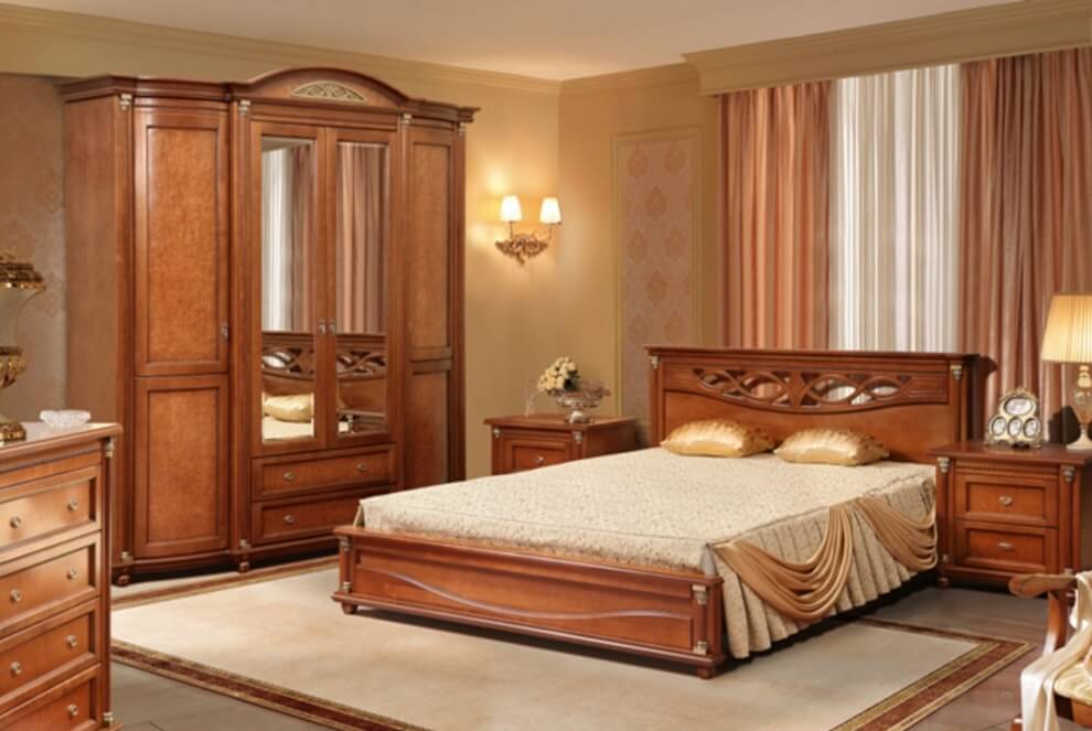 Мебель для спальни из массива дерева изготовлена из натурального сырья, она благотворно влияет на здоровье человека