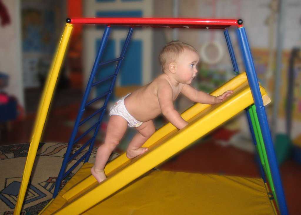Для малышей — от 1 года есть небольшие горки с пологими стенками — они обычно стоят отдельно