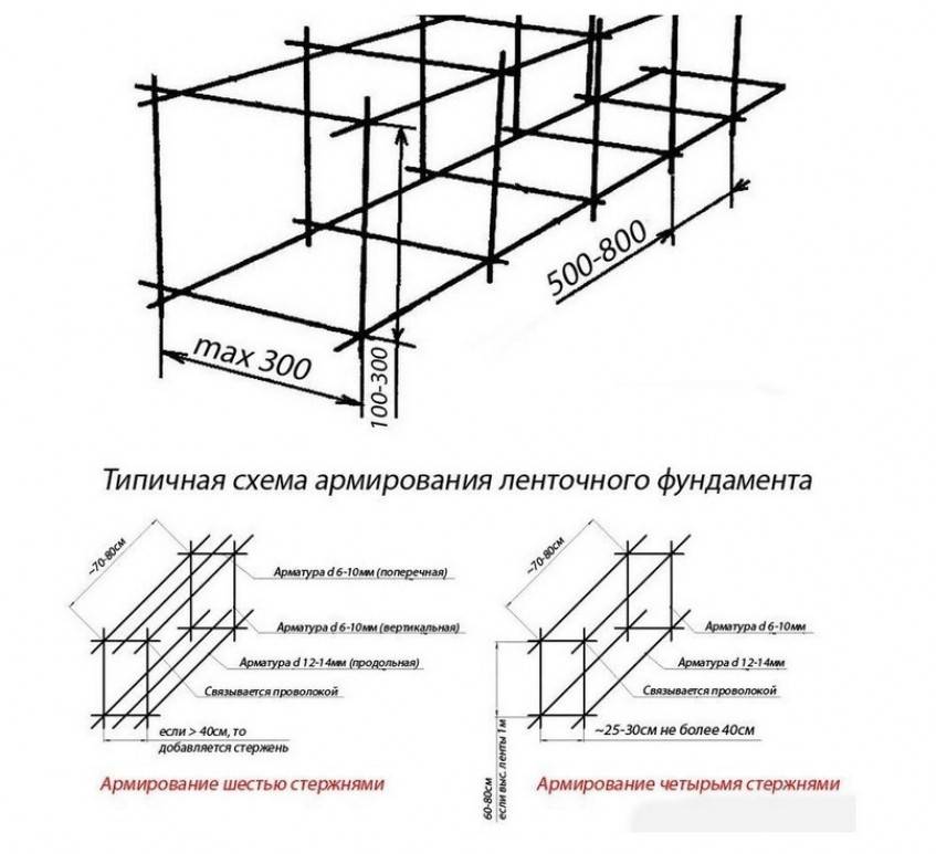 Подробнее об армировании основания ленточного типа своими руками: