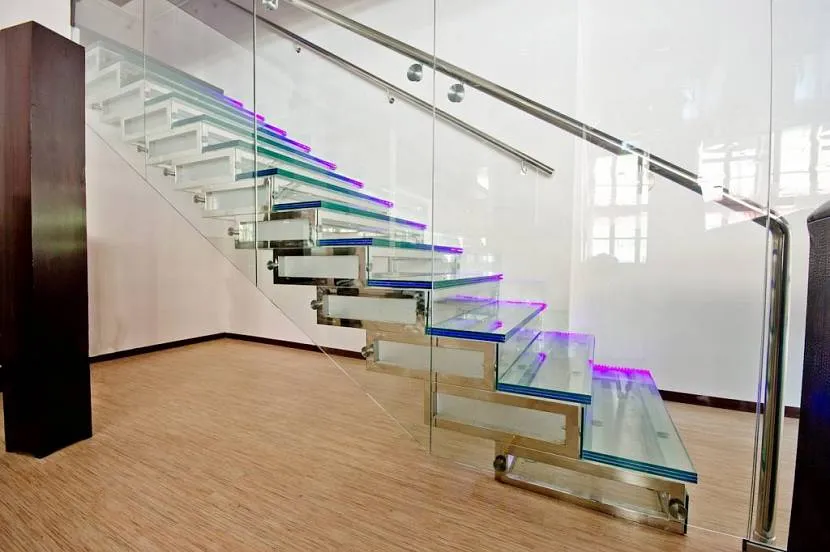 Чаще всего используют три основных вида стекла для изготовления подходящих для лестниц элементов ступеней: