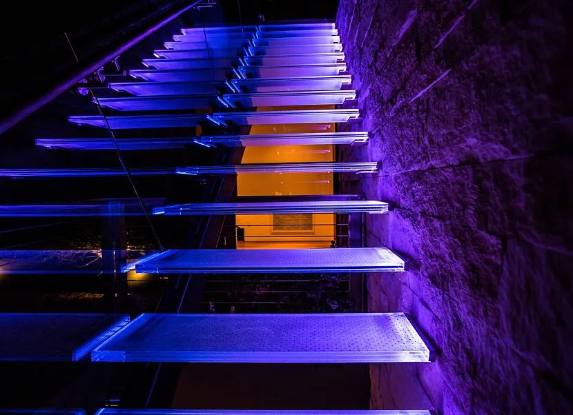 Ступени из многослойного стекла способны выдерживать значительные механические нагрузки.