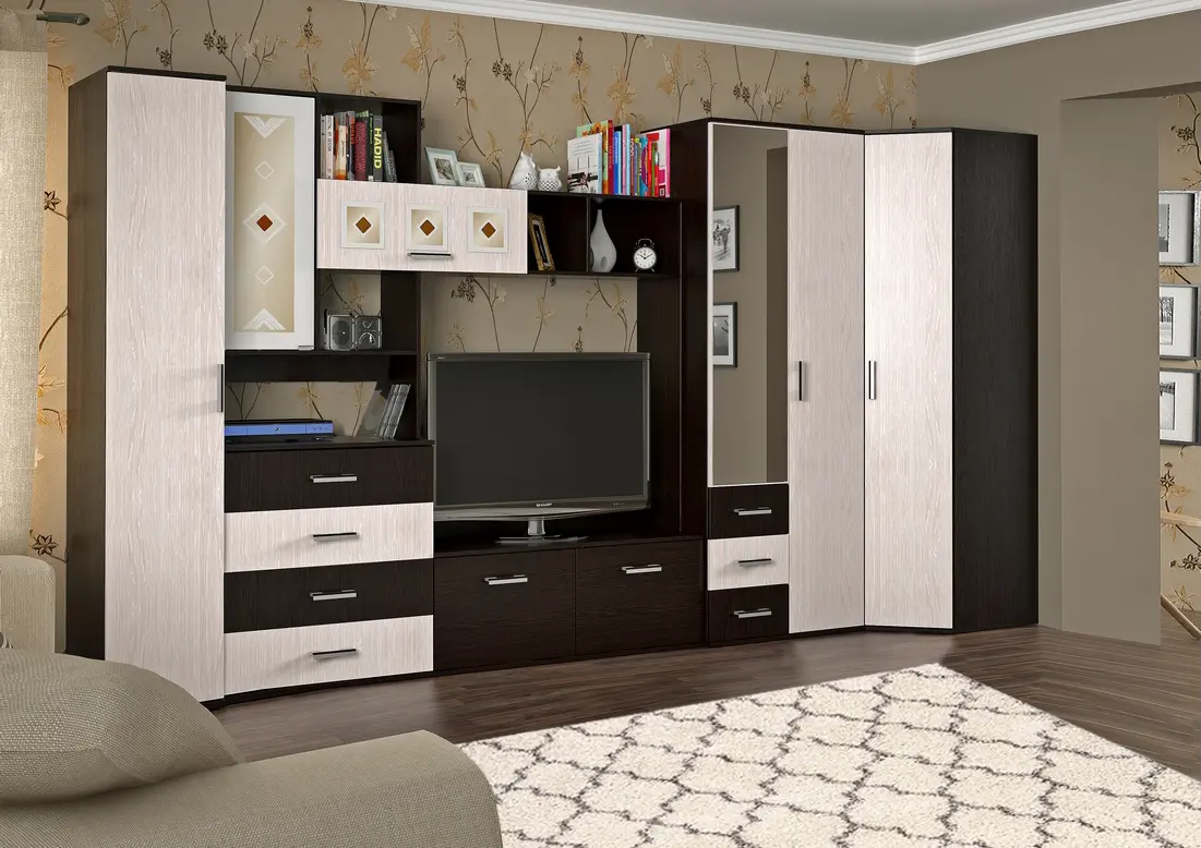 Мебельная стенка в комнату с вместительным шкафом-купе
