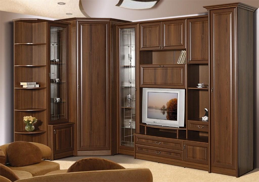 Угловые стенки в гостиную «классика»: фото