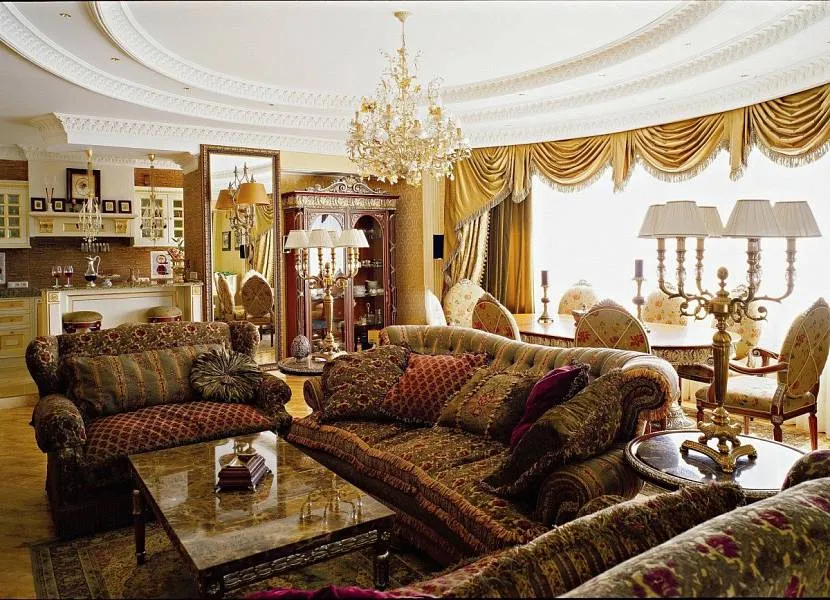 В классической гостиной понадобятся не только антиквариат и диваны, обитые кожей, бархатом.
