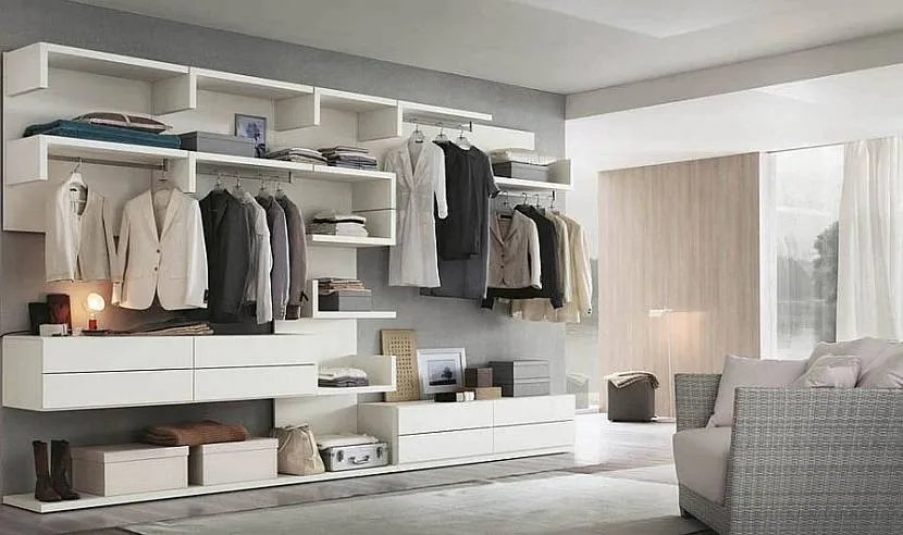 Открытый гардероб в спальне