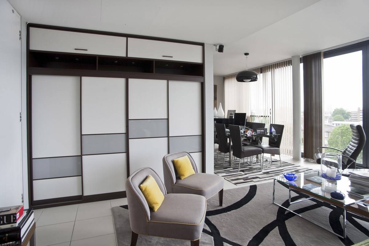 Идеальный вариант для размещения большого количества вещей и экономии функционального пространства — поставить в гостиную шкаф-купе.