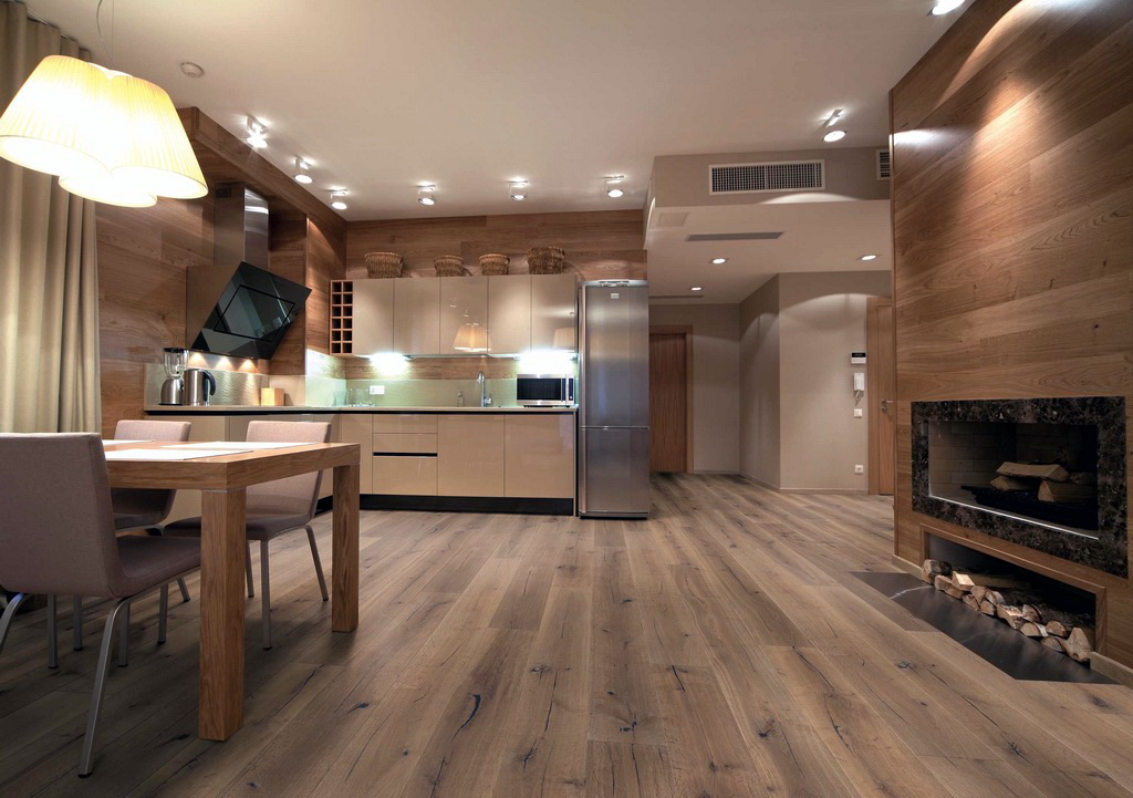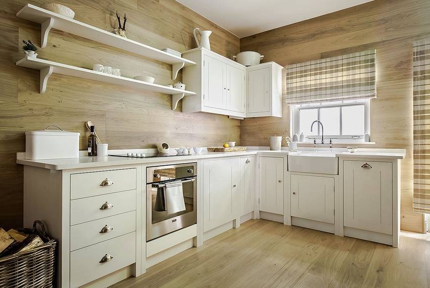 Стеновая панель, имея древесную фактуру, как важный элемент интерьера кухни, должна сочетаться с прочими элементами интерьера, дверями, полом, и т. д.