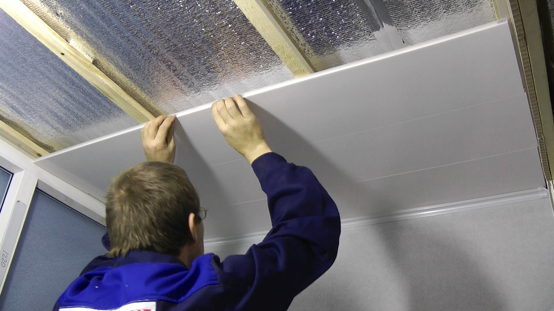 - бруски или же металлопрофиль, на который крепятся панели, выполненные из ПВХ, располагают перпендикулярно направлению их установки;