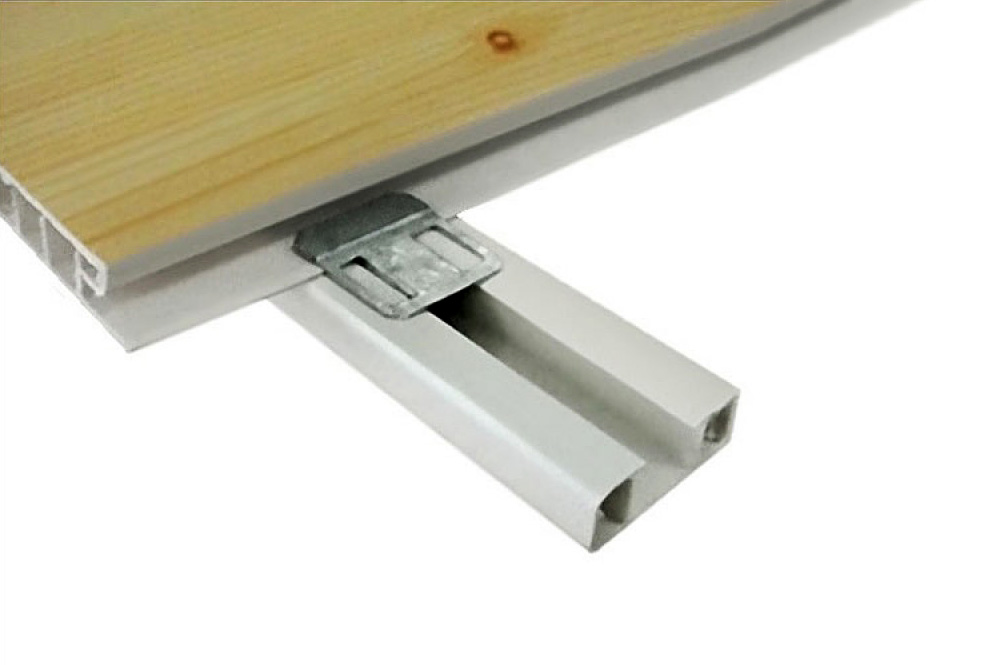 Пластиковые или металлические профили будут лучшим вариантом для обрешётки, если работы проводятся внутри влажных помещений. Крепление панелей на рейках предполагает применение специальных клипс. Клипса для крепления панелей станет незаменимым помощником, тогда монтаж/демонтаж конструкции значительно упрощается.