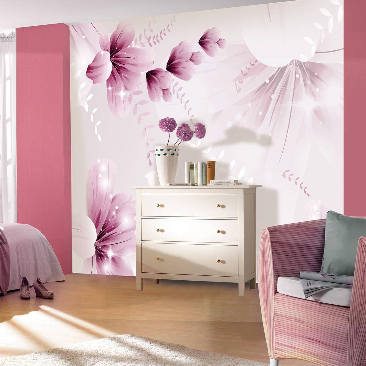 цветов. Мотивы флористики применяются при оформлении интерьера во всех стилях. Розы, пионы, одуванчики, нежные тюльпаны или водяные лилии способны создать неповторимое изображение, способное покорить не одно сердце;