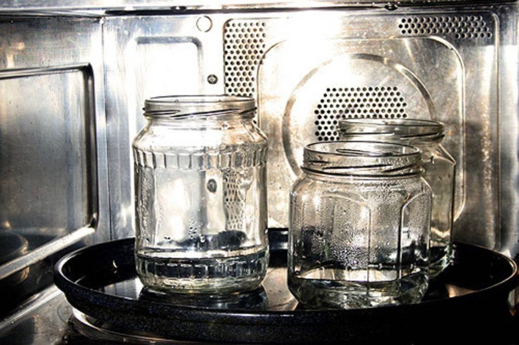Современный и оперативный способ, который стерилизует сразу несколько банок за один раз. Кроме того, он не повышает температуру в помещении. Для стерилизации наливаем на дно банок воду, примерно на два-три сантиметра в высоту. Ставим в микроволновку с мощностью от 700 Вт на пять минут. Однако в печь не вместятся большие и высокие банки. Подробнее, как стерилизовать банки в микроволновке, читайте здесь.