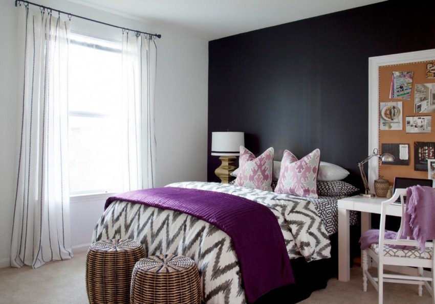 Уникальные, противоречивые и очень притягательные фиолетовые оттенки, наделяют дизайн комнаты благородством и обеспечивают приятную цветотерапию.