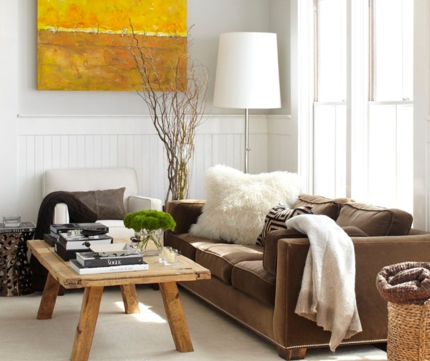 Общая палитра оттенков меняется от средней к тёмной – это связано с климатическими особенностями и недостатком солнца. В качестве осветительных приборов устанавливают бра и торшеры, размещая их по высоте на среднем уровне.