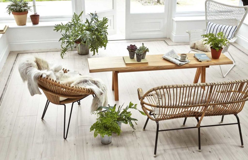 - неординарная мебель из тюльпанного или каучукового дерева, ротанга или тика;