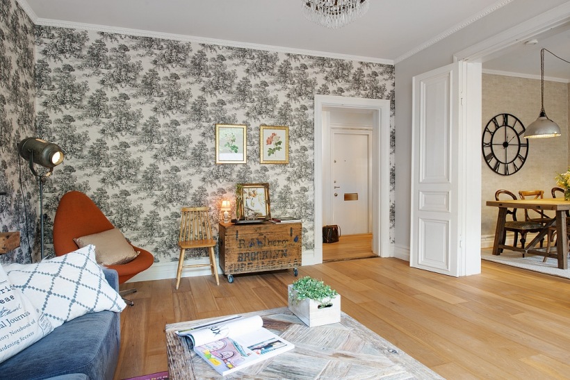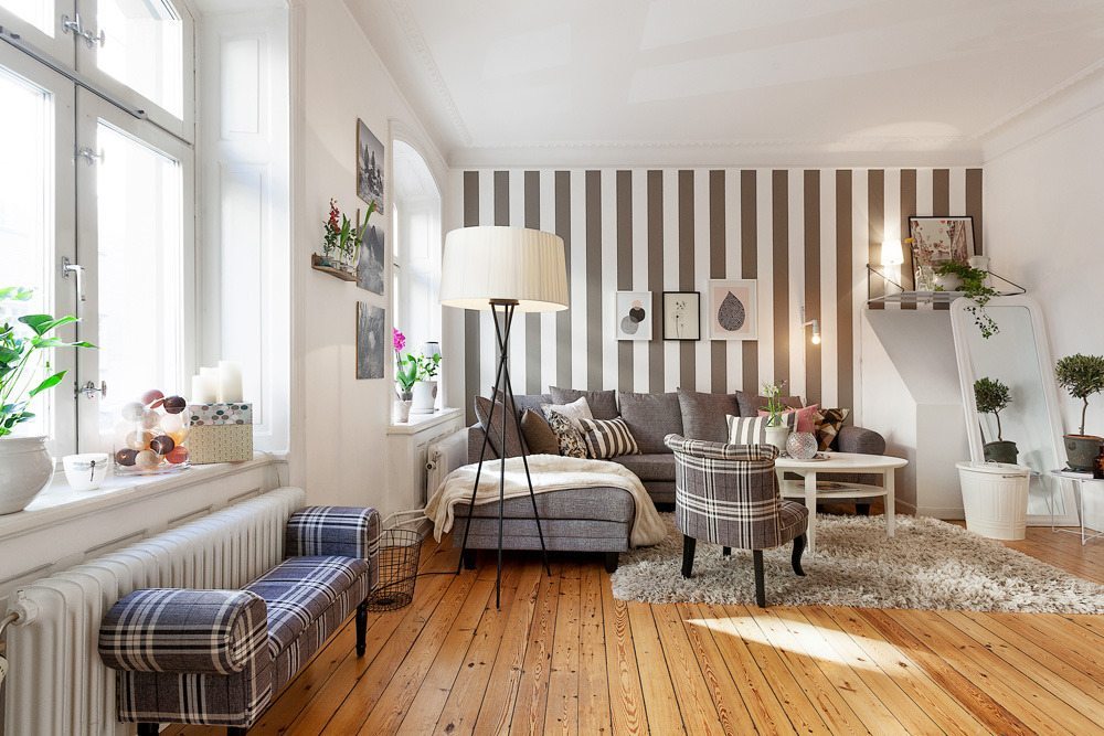 Сканди. Белоснежные (или с легкой тонировкой) стены стали визитной карточкой скандинавских интерьеров. Они безукоризненно сочетаются с недорогой деревянной мебелью, уютным текстилем, растениями и простым декором.