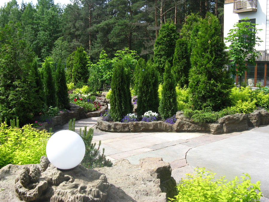 - украшением послужат крупные валуны, древесные коряги, металлические шары, бетонные статуи.