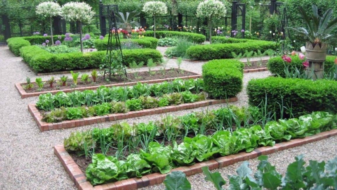 Красиво-оформленные овощные и ягодные грядки уже давно стали частью декоративного ландшафта. Они гармонично соседствуют с цветочными клумбами и даже украшают отдельные зоны сада. Чтобы придать огороду ухоженный вид, между грядками можно уложить газон в рулонах, засыпать гравием.