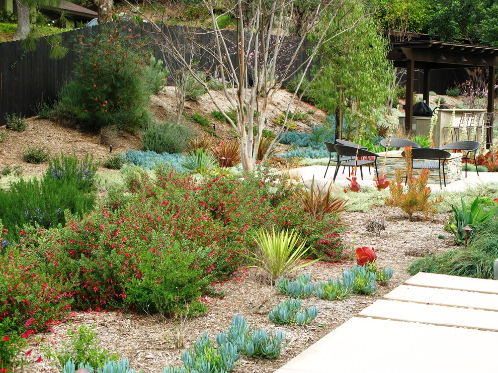 - Эклектика. Местные растения здесь могут соседствовать с экзотическими, но основную часть сада занимают неприхотливые виды.