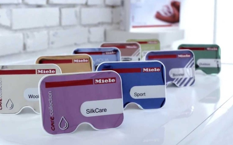 - Cap Dosing. С помощью данной разработки проводится стирка изделий из деликатных тканей. Чтобы мягко очистить шерсть или шелк от пятен, потребуются специальные капсулы. Их необходимо заложить в отсек для кондиционера, система автоматически задействует их в нужный момент. Miele предлагает на выбор пользователя 6 видов капсул для очищения от пятен, стойкие загрязнения устраняются специальным средством. Три типа кондиционера позволят освежить белье (Aqua, Nature, Cocoon).