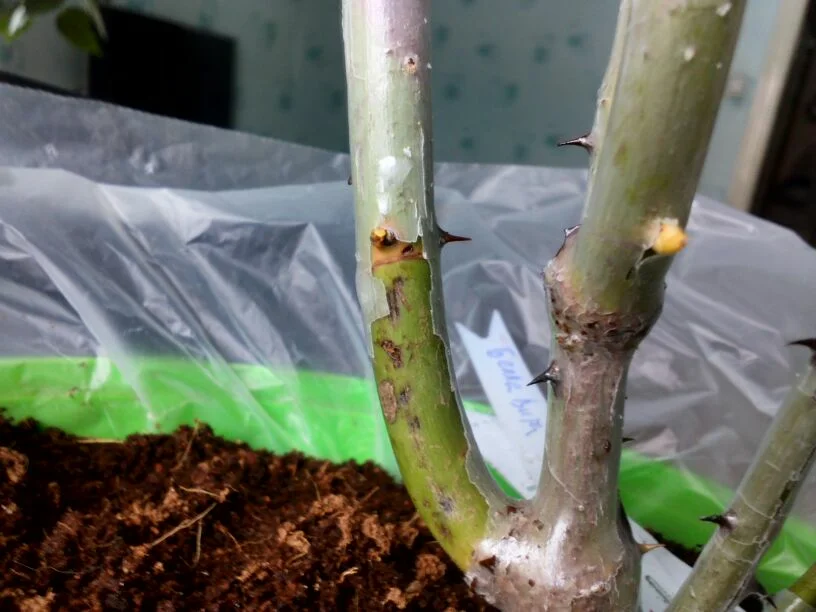 Нужно помнить, что розе для укоренения нужен холодный старт. Только при низких температурах (10-15° С) происходит отрастание корней.