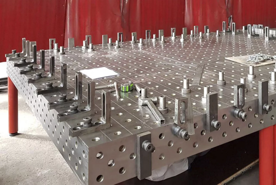 Проще всего сделать своими руками первую разновидность сварочного стола. Простая модель состоит из жесткой прямоугольной рамы, к которой приварены четыре опоры. В качестве последних используют уголок или стальную трубу. Для большей устойчивости ножки скреплены по периметру металлическими перекладинами. Столешница простого стола оснащена пазами перфорации для закрепления свариваемых деталей.