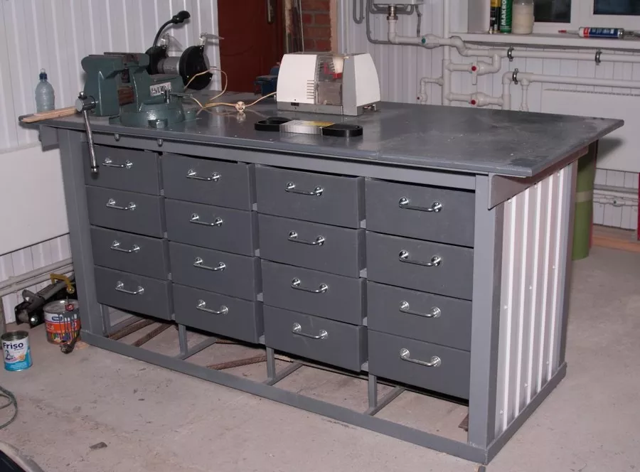 Конструкция полупрофессионального верстака оборудована круглой платформой, которая может плавно вращаться. Движение возможно благодаря установленному электродвигателю. Такая модель позволяет сварщику создавать сложные изделия, не передвигаясь вокруг мебели. Сборочно-монтажный стол предусматривает дополнительные вмонтированные элементы: головчатые устройства для сверления, шлифования, фрезеровки, а также встроенный вентилятор.