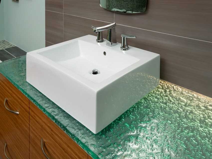 - стекло — при изготовлении раковин из этого материала используется стекло толщиной не меньше 1,5 см. В процессе производства стекло закаливается, что делает изделие прочным и устойчивым к механическим повреждениям. В сравнении с керамическими моделями, стеклянные по своим характеристика отличается не сильно. Но стеклянные имеют более доступную стоимость;