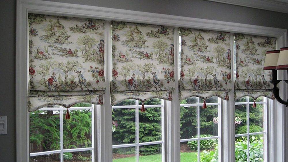 Римская шторка – это полотнище из плотной ткани, которое при открывании образует большие ниспадающие друг на друга складки, а в открытом положении выглядит как сплошное ровное полотнище. Во время шитья такой занавески по ее ширине с равным шагом делают карманы для установки направляющих. С тыльной стороны пришивают специальные кольца для протягивания веревки для управления шторкой. Как правило, шаг ниспадающих складок составляет 200-300 мм.