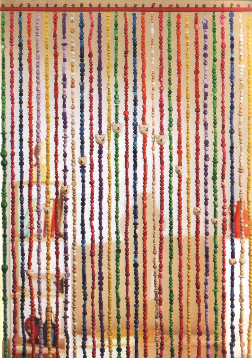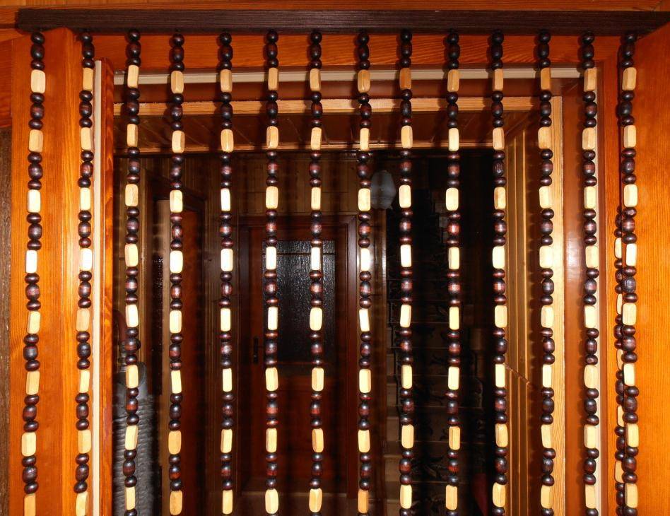 Образуется полотно путем поочередного присоединения нитей, длиной равной высоте проема, с закрепленными на них небольшими деревянными деталями различной формы. Часто они представляют форму цилиндра или шара. Детали крепятся по всей длине каждой отдельной нити. Такой способ оформления внутренних переходов из одного помещения в другое давно приобрел популярность не только благодаря своей эстетической нагрузке, которую он несет, но и экономичности.