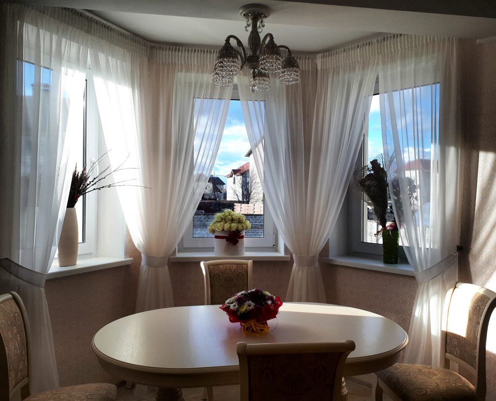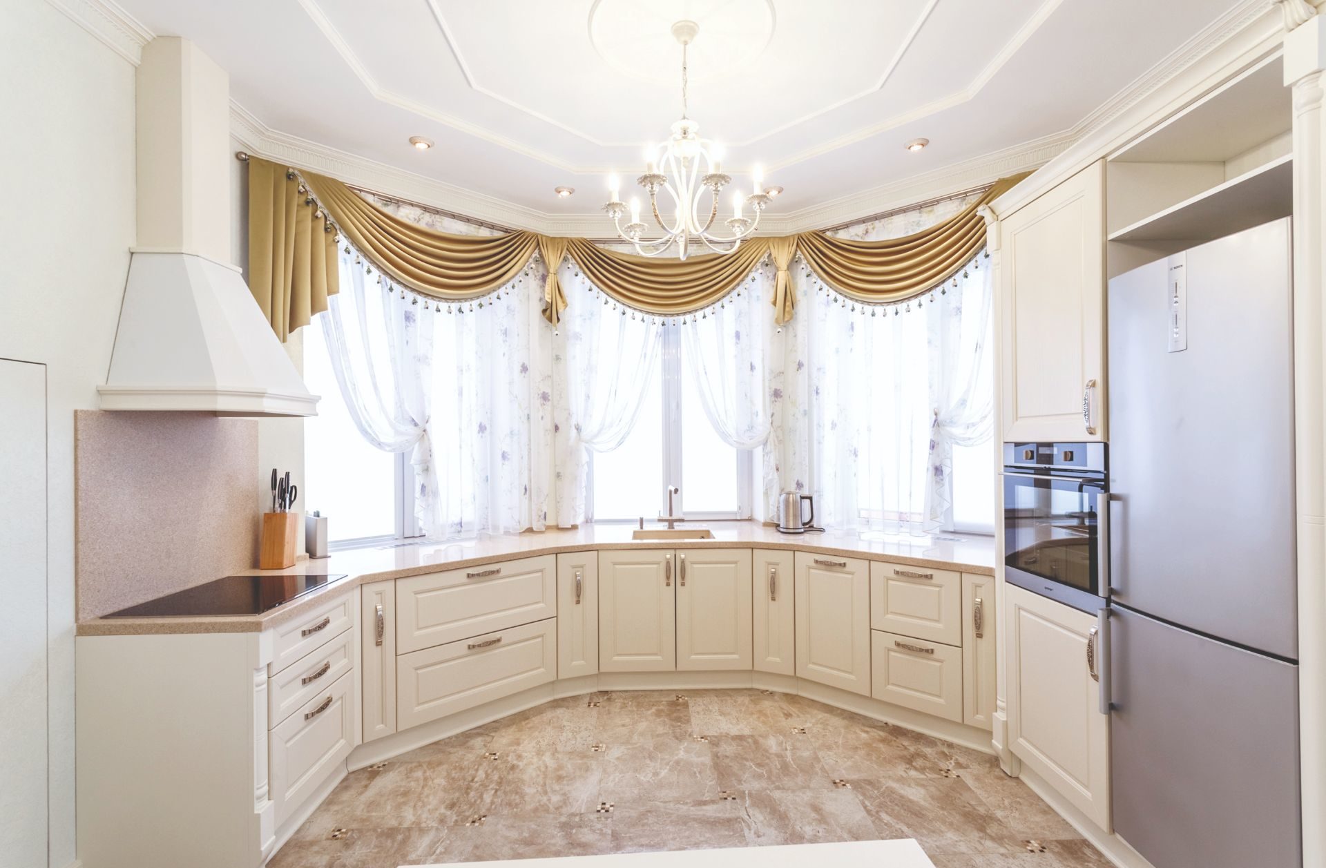 Эркер на кухне – отличная планировка. Драгоценное пространство кухни увеличивается, и всегда есть возможность пообедать, глядя на панораму за окном. Однако при выборе штор для эркера на кухню есть свои нюансы.