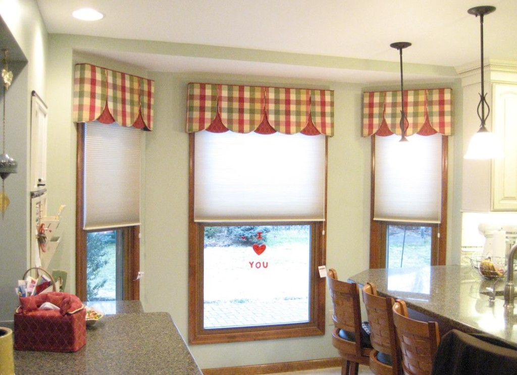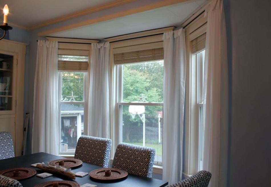 Шторы на кухню: эркерное окно. В данном случае следует заранее определиться, для какой зоны нужны шторы – кухонной или столовой. Как повесить шторы на кухне?