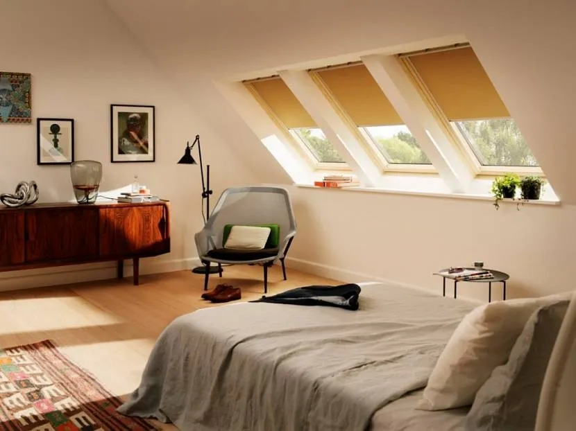 Окно на мансарде можно не закрывать полностью, а подбирать нужный уровень освещения Источник roomester.ru