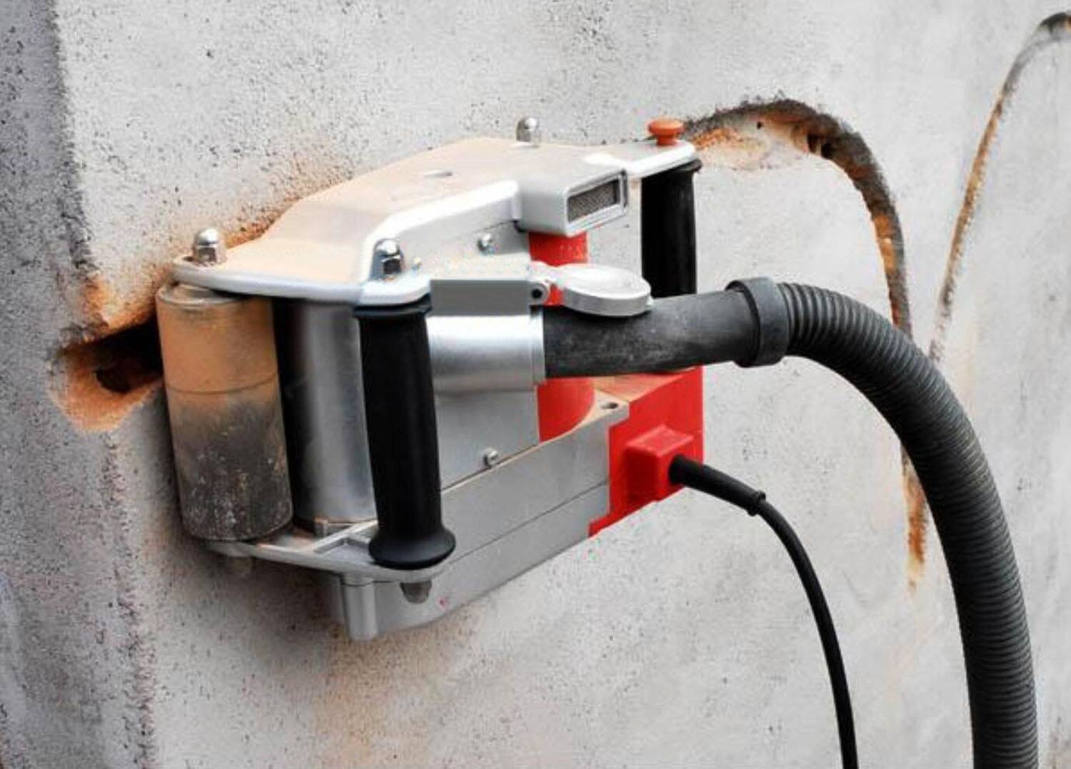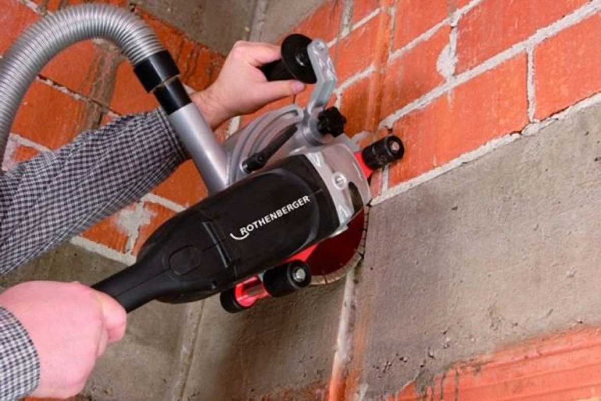 Профессиональный инструмент для создания штроб в плотных бетонах и камнях имеет электродвигатель, от которого вращаются сразу два алмазных диска, прорезающие параллельные канавки. У этого инструмента можно настраивать глубину прорезов и устанавливать расстояние между ними. К рабочему органу подключается шланг промышленного пылесоса, через который отводится вся образующаяся при резке пыль. Внутренняя система уплотнений значительно уменьшает ее проникновение в помещение.