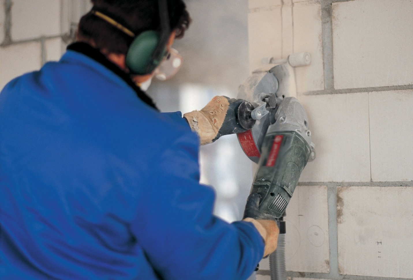 - При штроблении необходимо защищать дыхательные пути от пыли маской или респиратором.