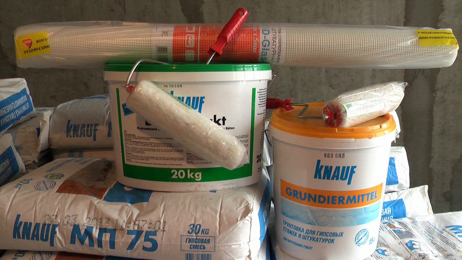 - «Ротбанд». Фирма «Кнауф» давно зарекомендовала себя на российском рынке как производитель строительных материалов хорошего качества. «Ротбанд» наносят толщиной слоя до 50 мм, время использования смеси – 20-25 минут;