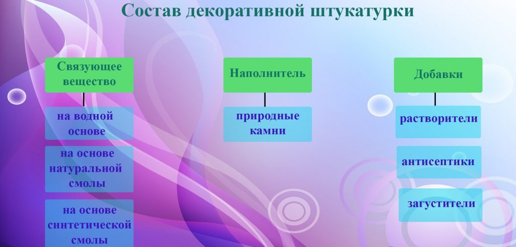 Еще одна смесь, с помощью которой можно создавать фактурное покрытие на стенах, состоит из: