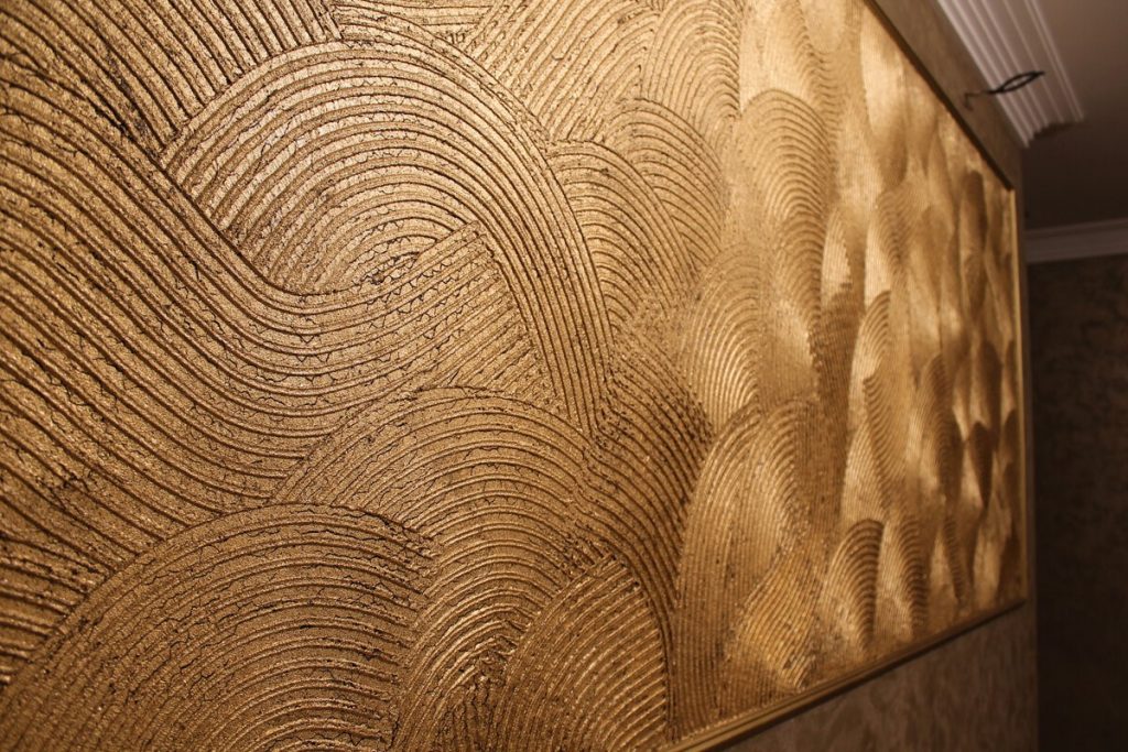 - Фактурная, декоративная – в составе присутствует крупный заполнитель, который при разглаживании смеси образует фигурную структуру «короед», «шагрень» и другие узоры, предназначен для устройства непосредственно перед покраской стен.