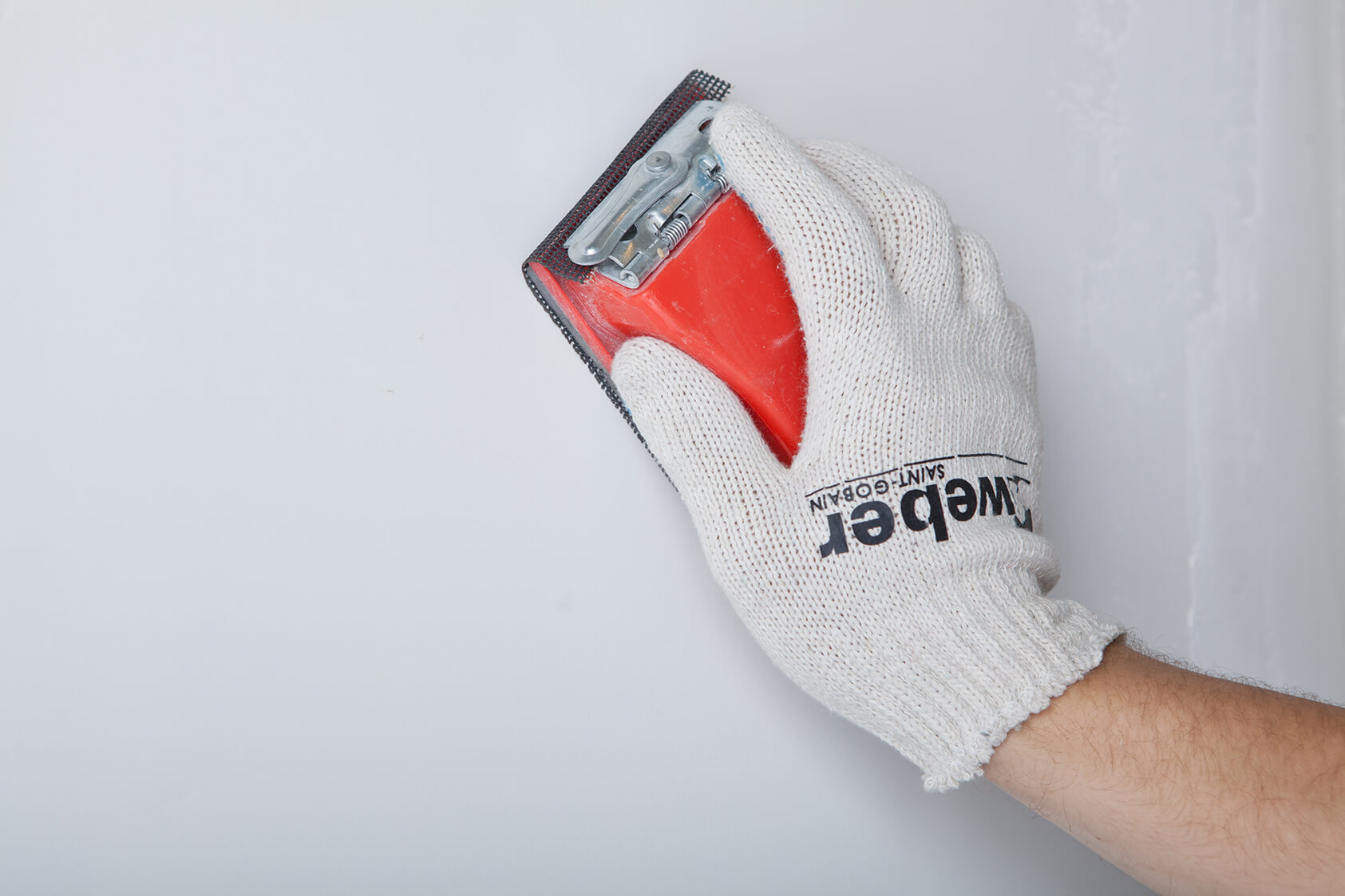 После нанесения на оштукатуренный потолок финишной шпаклевки Vetonit LR+, Vetonit KR или Vetonit LR Pasta Brilliant производится шлифовка с применением шлифовальной бумаги или сетки, закрепленной на специальный брусок.