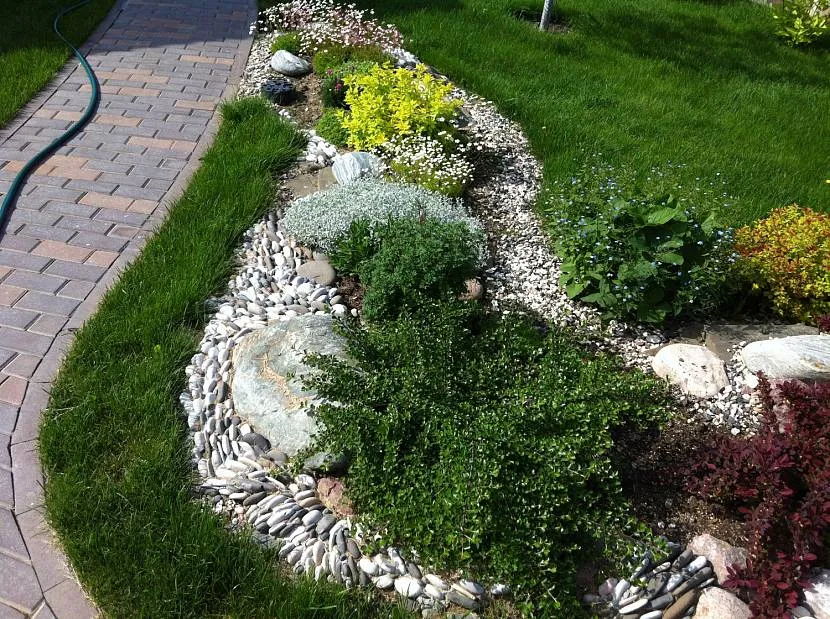 декорированием берегов, иначе засохший водосток превратится в клумбу