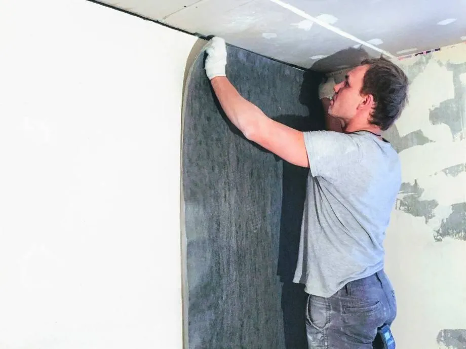 На подготовленную стену наклеить звукоизолирующую мембрану — самоклеющуюся или обычную.