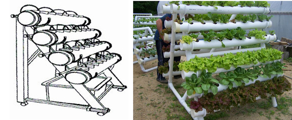 Каркасная система из труб, размещенных вертикально и горизонтально, пригодится для участков малой площади. В пластиковых элементах удобно выращивать зелень, ягоды. Для формирования системы подойдут широкие канализационные трубы. Заранее сделать отверстия, заполнить их грунтом и высадить рассаду. Фиксировать в любом положении – вертикальном, горизонтальном на стену или каркас из ПВХ труб.