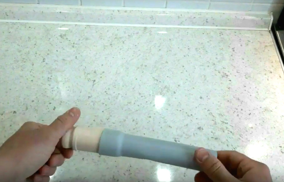 ФОТО: YouTube.comТеперь нужно просто нагреть ПВХ-заготовку и одеть на развальцовку, покручивая для равномерного расширения